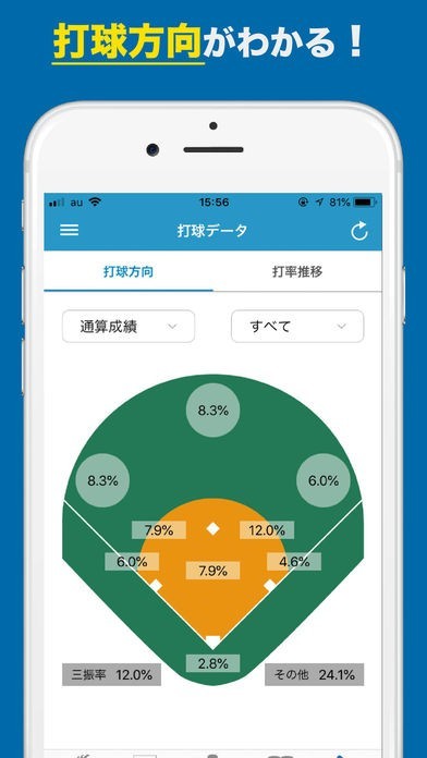 野球をやっている小学生から社会人まで、自分の打撃成績、打球方向を記録し、自分だけの野球史を確認できます。さらに打撃に関する動画や記事など、技術の向上に役立つ情報が届きます。