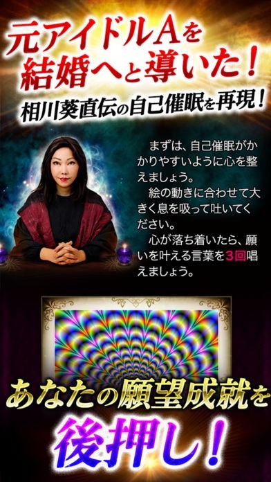 あなたの心に眠る真実を呼び覚ます。催眠霊能占い師、相川葵先生による占いアプリ