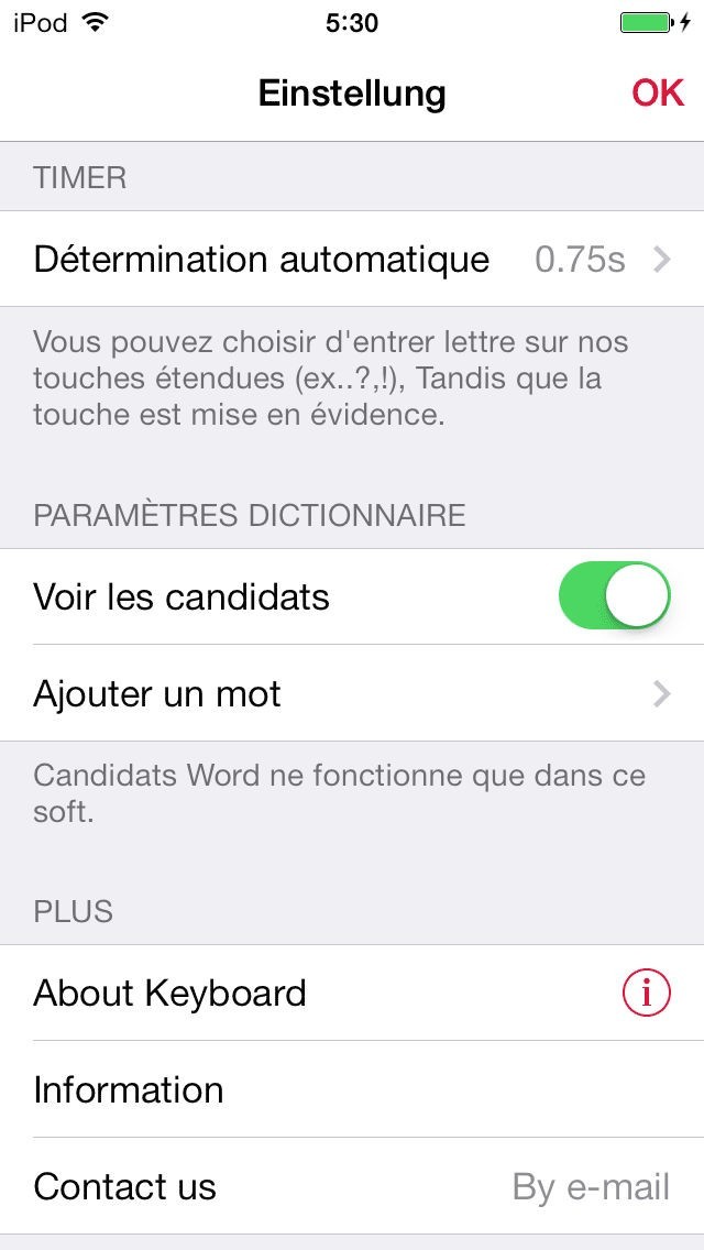 App Storeより引用Type messages in French easier and faster with our extended keys for the your iPhone/iPod French keyboard.