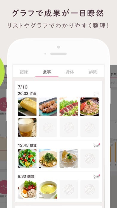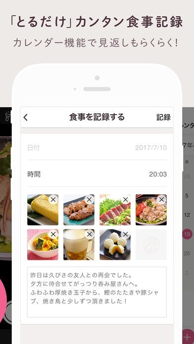 食事の記録が面倒で続けにくかった人には、食べた物の写真を撮るだけでいいのでラクチン