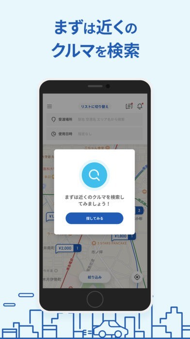 ※本バージョンではオーナー登録とクルマ検索のみ行なえます。カーシェア予約は2019年5月より開始予定です。