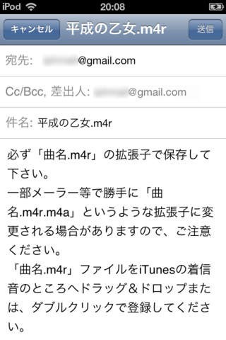 アプリ内からメールでパソコンに着うたを送信