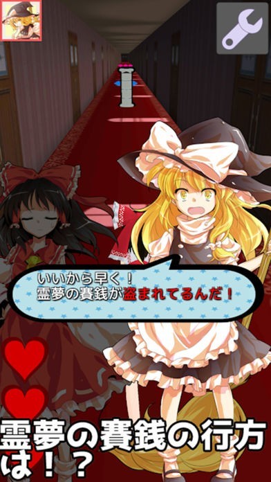 ある日、お酒を飲んで目が覚めるとお賽銭箱が盗まれていた!霊夢を操作して、賽銭泥棒を捕まえましょう。障害物を避けながら進む「追跡モード」と、弾幕を避けつつ札で攻撃しながら進む「戦闘モード」の2種類あります。