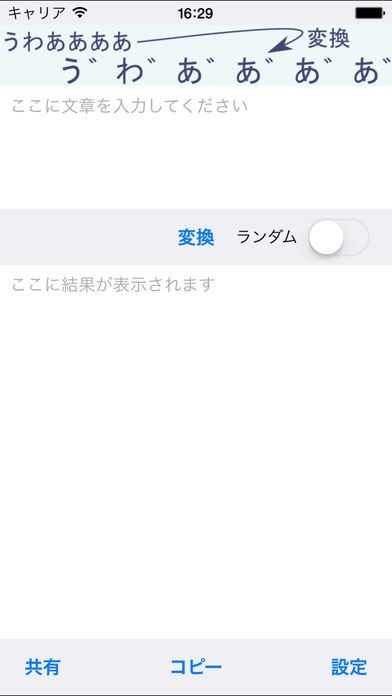 スマートフォンで文字を打っている時、漫画で使われるような濁点のあるひらがなを使ってみたいと思う事ありませんか。「Dakuten」はそれが可能になるアプリ。文字を入力して変換ボタンを押すといつものひらがなが早変わり。すぐにスマートフォンで利用する事が出来ます。ランダム機能を使って、自分の作った文章に濁点をふって楽しいオリジナル作品も作れます。ひらがなだけでなく、空白等にも濁点を追加可能で、半濁点を入れて面白い文字を作り出す事も出来ます。又共有ボタンを押すと、SNSと連携して自分オリジナルの文字をアップロード出来るので、シェアしてフォローしている人と楽しむことも可能。