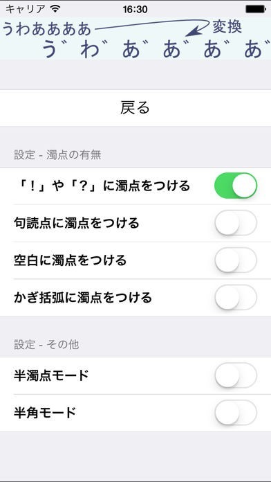 濁点追加でスマートフォンの文字を漫画チックにしたい人に!「Dakuten」