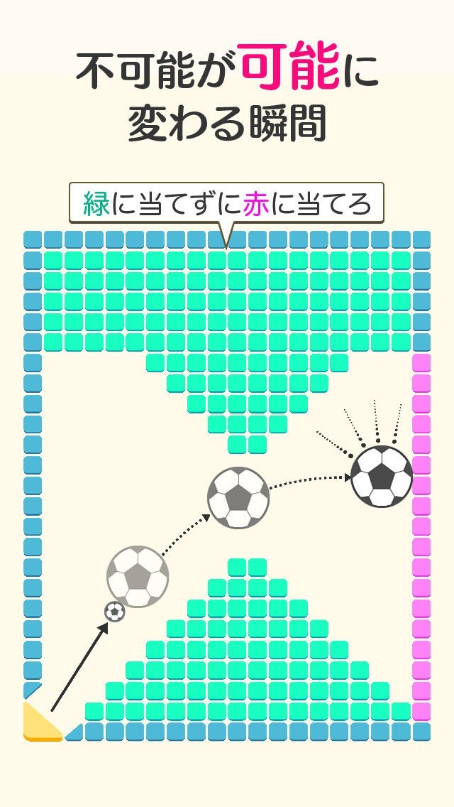 玉を発射させ大なボールを動かしてミッションをクリアしていく物理パズルゲーム、発射できる玉数は無制限で好きなだけ脳を活性化
