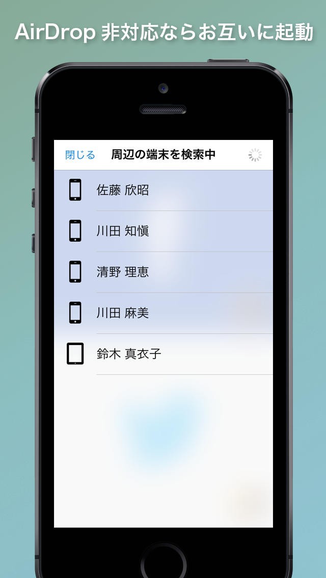 周辺の端末を自動的に検索。結果からタップでアカウントの送信先を選択するだけ!