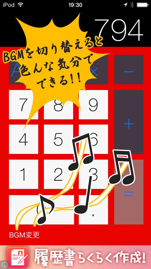 「電卓無双 ゲーム感覚の計算機」計算時に敵をめった斬りにする演出がついている計算機アプリです。もちろんのアプリの主要機能は計算機ですが、赤と黒の情熱的なデザインと、侍や時代劇を感じさせるBGMは個性的な計算機を使いたいと考える人にピッタリです。BGMには複数あり、好きな曲に切り替えることが出来る他、レアな楽曲がまれに流れるお楽しみ機能がついています。もちろん、BGMをオフにすることができ、日常的に使用することが可能です。