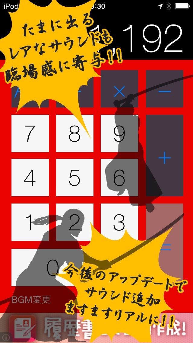計算時に敵をめった斬りにする演出がついているゲーム感覚の計算機アプリ。!