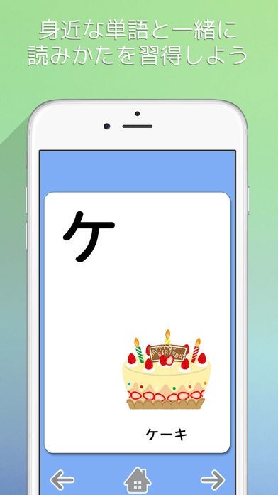 小さいお子様がひらがなを覚えた後にチャレンジしたいカタカナ学習は、「カタカナカード」から始めてみてはいかがでしょうか。カタカナの単語が書かれたカードに、「アリ」や「イヌ」等それぞれに対応した可愛いイラストが書かれています。イラストにタップすると、可愛く動くので、小さいお子様はそれだけで楽しく暗記する事ができます。また、プロの声優の正確な発音が収録されているので、可愛いイラストやカタカナと共に、正しい音声も学ぶ事ができます。カードは一枚一枚表示されるので、お子様はストレス無く楽しむ事が出来ます。表示する順番もアイウエオ順かばらばらから選ぶ事ができるので、お子様に合わせて楽しませる事ができます。タップ、フリック等簡単操作のみなので、お子様一人でも感覚的に操作する事が可能です。