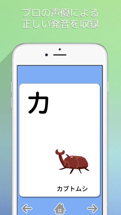 簡単操作で可愛いイラストに触れながら楽しくカタカナ学習!プロの声優による発音で正しく暗記!