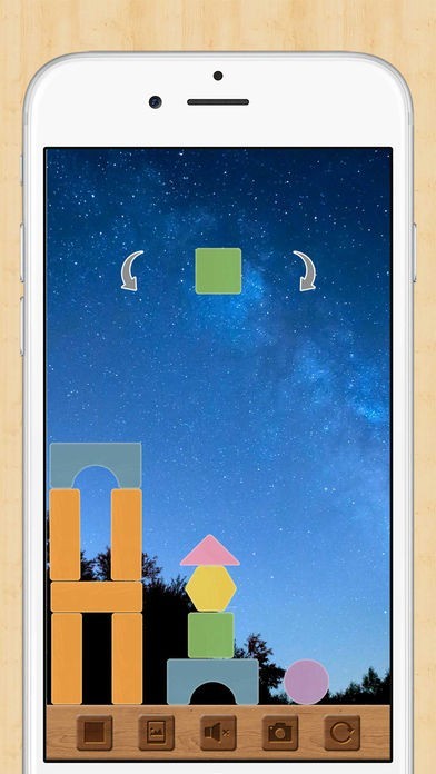 様々な形が次々と現れるスマホで積み木遊びが楽しめるアプリ、弾んだ感覚や滑る感覚が魅力