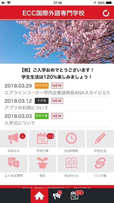 App Storeより引用このアプリはECC国際外語専門学校公式の在校生向け学生生活支援ツールです。