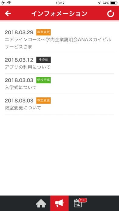 学校からのお知らせ配信を受け取ったり、年間の学校行事を確認したり、その他学生生活を送る上で必要な情報をいつでも閲覧できます。