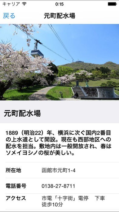 ・観光スポットの所在地、電話番号、紹介記事などを見ることができます。