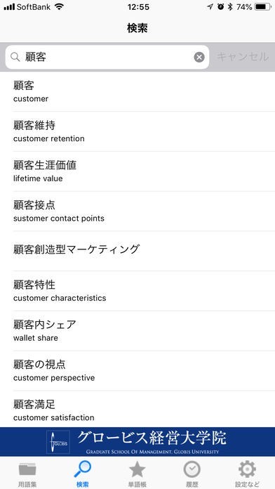 「グロービス-MBA用語集」は東京や大阪などに拠点を持っている学校法人グロービス経営大学院が経営学を学ぶ際に必須の用語集をスマートフォンで好きな時に確認することができるように開発したアプリとなっています。カテゴリーごとに分けられた用語を閲覧したり、キーワードを入力することで自由に用語を検索することができるようになっていて、詳細な説明や関連する用語などを確認することが出来ます。確認した用語は履歴として保存され、あとから見直すことも容易となっています。