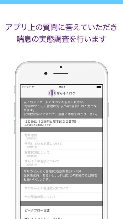 『ぜんそくログ』喘息日誌の機能でコントロールしながら実態調査に貢献して臨床研究に役立つアプリ