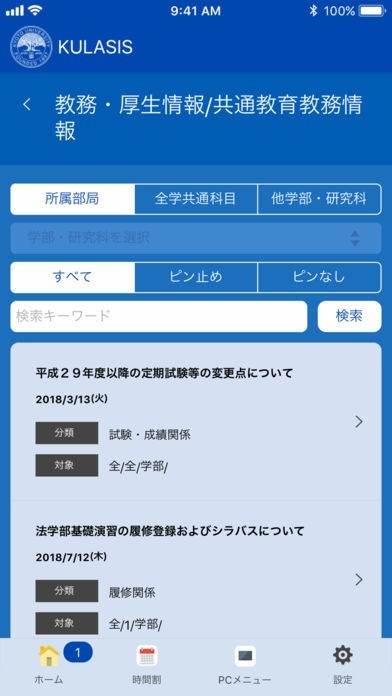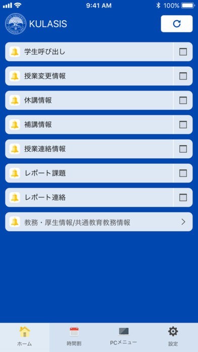 教室の変更やレポートの締切日などのお知らせをいつでもどこでもチェック