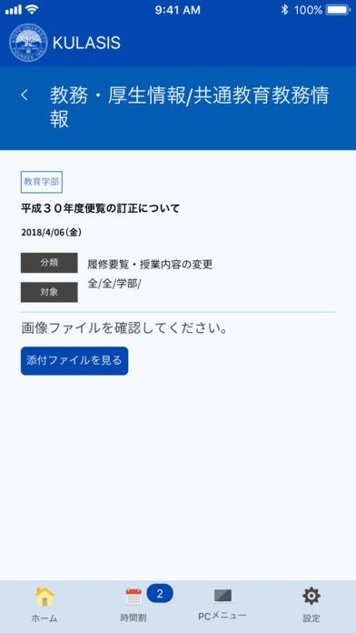 App Storeより引用1.学生呼び出し・授業変更・休講情報等の各種掲示を表示