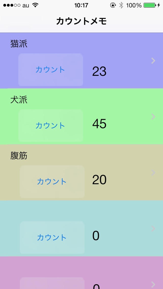 カウンター機能が搭載されているメモアプリです。5つの項目についてメモと共にカウント数を記録することができます。「カウント」ボタンをタップすることでカウントが1つずつ増えていきます。メモごとに色を変えることができるので見やすく、カウントのつけ間違いを防ぐことができます。ワンタップでカウントをリセットすることも可能です。 多くの人にアンケートを取ったり、自分の筋トレの回数を数えたりするのに便利です。メモは保存できるので、記録として残していつでも振り返れます。