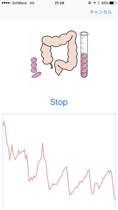 測定機能は、便意時や腹痛時にスマホのカメラ部分に指を当て、落ち着いて計測する