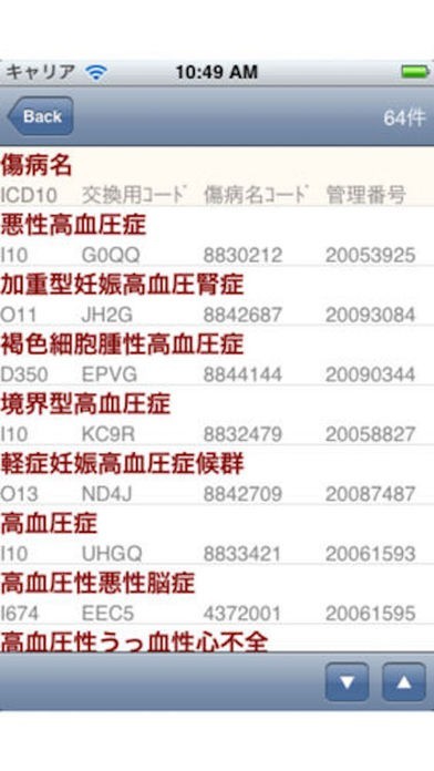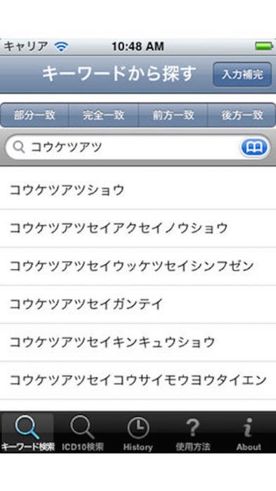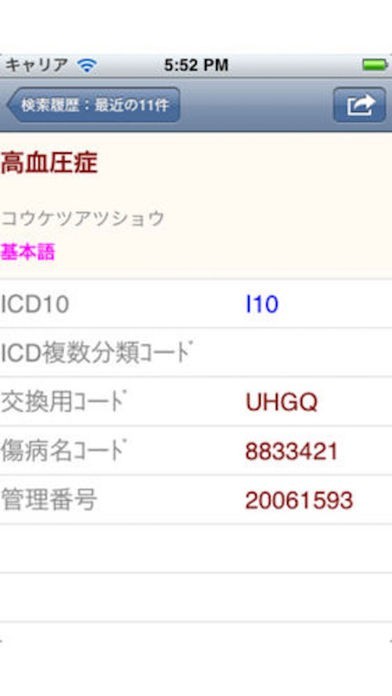 検索機能から病気の正式名称が分かる。電子カルテで使用するICD10のコード検索にも便利