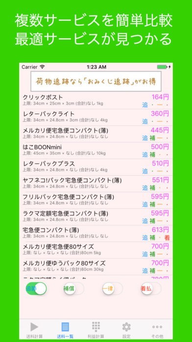 送料計算/送料比較アプリ MerCalcのスクリーンショット