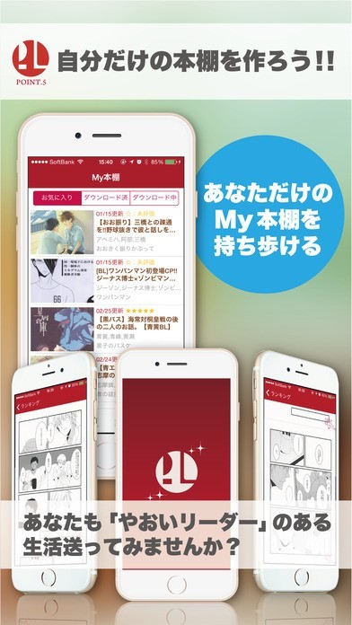 やおいリーダーは、毎日更新されるBLの同人誌作品を読むことができる