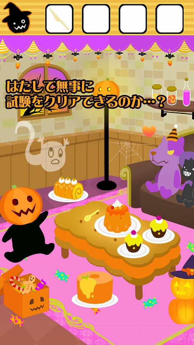 ハロウィンの夜に訪れた脱出試験の合格を目指し謎を解き明かせ!2段階でのヒント機能搭載で、小さなお子様にも最適