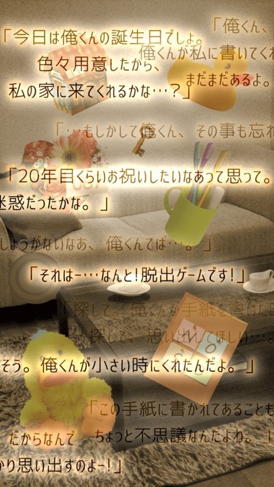 幼馴染との思い出を描いたアドベンチャーゲーム「脱出ゲーム ロストメモリーからの脱出」 隣の部屋に住む幼馴染「紫穂」との思い出を探し、失われた記憶からの脱出を目指しましょう。 マルチエンディング方式を採用しており、各ステージで紫穂の好感度が上がる選択をすることで、エンディングが変化していきます。 画面上の怪しい場所はくまなくタップすることで探索が可能。 また、アイテムにはギミックが仕掛けられていることもあり、タップすることで新たなアイテムやヒントを発見することができます。