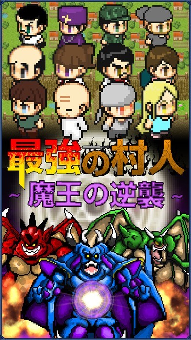 このゲームは村人をたくさん集めて魔王を撃退する内容となります。魔王を倒すとコインを手に入れる事ができるので、これで武器や防具を購入して装備させることができるので強化することが可能です。