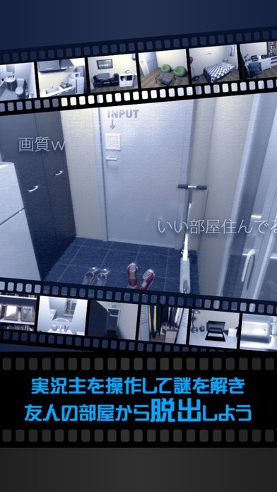 ネットで人気の実況生放送をテーマにした脱出アドベンチャーゲーム「【脱出ゲーム】実況生放送してみた~友人宅からの脱出?~」 プレイヤーは実況主となり、友人宅からの脱出を目指すことになります。 画面の怪しい場所をタップして調査を行い、ヒントやアイテムを発見しましょう。 タップで実況生放送風のコメントが流れるのも、このゲームならではの特徴です。 放送を重ね、視聴者が増えることでコメント数もアップします。 20ステージ以上を収録しており、たっぷりプレイできるのも嬉しいポイントとなっています。
