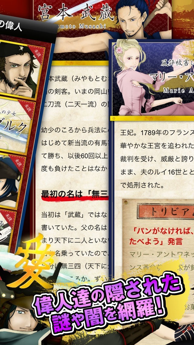 App Storeより引用歴史上の人物の真実を徹底追及!