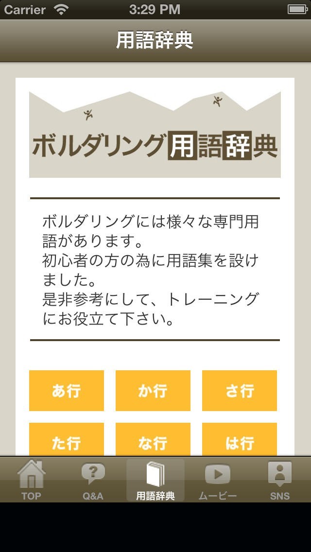 ボルダリング初心者に役立つ用語辞典などのコンテンツが満載となっているので、ちょっとした空き時間にスマートフォンを使ってボルダリングについて勉強することができます。