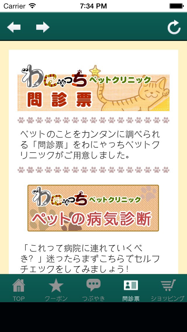 そんな時に役立つのが「ペット問診票」。様々な症状の中から当てはまるものを選択していくと、その原因を教えてくれます!