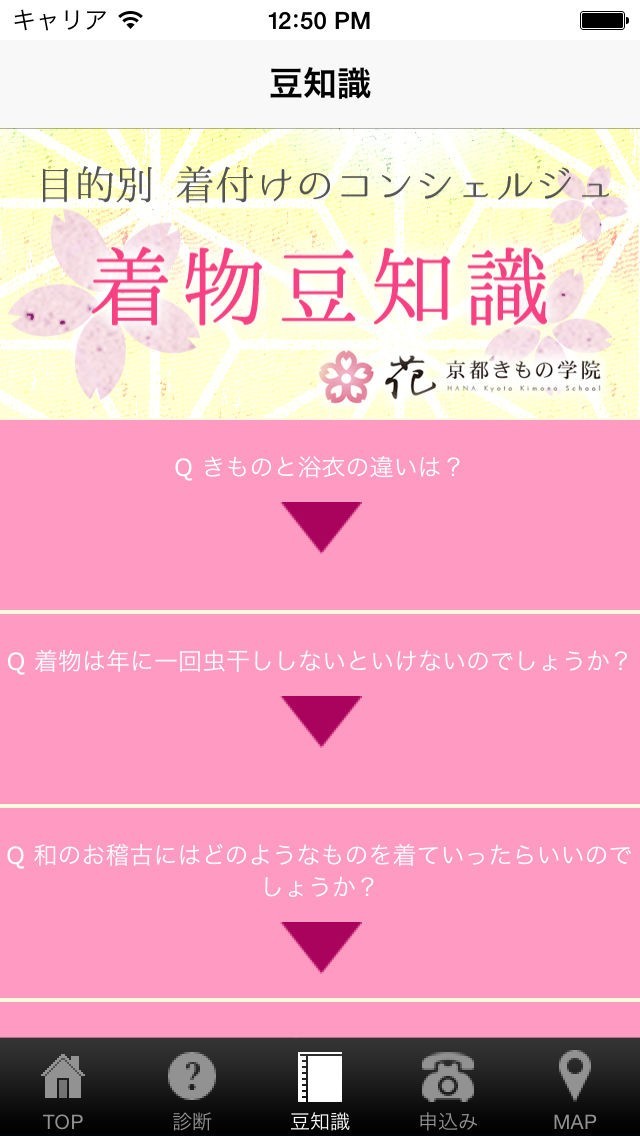 「目的別着付けのコンシェルジュ」は、「花京都きもの学院」が配信する公式アプリです。 学院のニュースはもちろんのこと、受講申し込みなどもアプリから手軽に行えるのが嬉しいポイント。 さらに多彩なコンテンツも用意されており、目的別きもの診断では自分に似合う着物を手軽に診断できるようになっています。 着物豆知識コーナーでは、今まで知らなかった知識を確認可能。 プッシュ通知機能を利用することで、最新ニュースやお得な情報を配信してくれます。