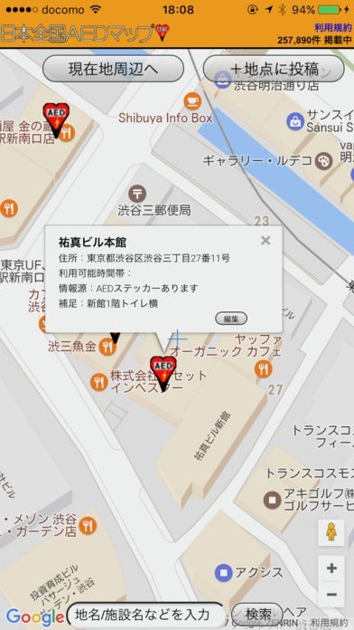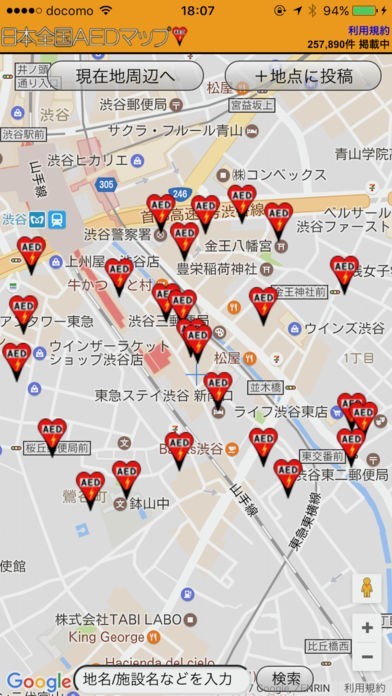 日本全国対応!AEDがどこに置かれているか検索することができるアプリ