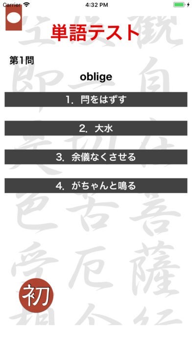 本アプリで登場する単語の中から少し難しいであろう単語133語を選出。その133語からランダムに20問を抽出して単語テストが行われます、全問正解を目指しましょう。