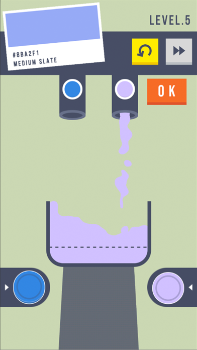 このゲームは2つの色をミックスさせて、お題の色をつくる新しいパズルゲームです