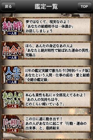 幅広いカテゴリーで助言が得られるから、ちょっとした運勢から運命の相談まで頼りになる!