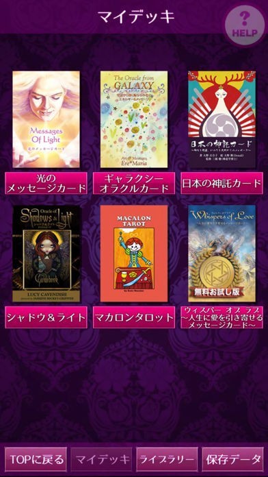 このアプリ1つで、"日本の神託カード"、"マカロンタロット"、"シャドウ&ライト"、"光のメッセージカード"、"ギャラクシーオラクルカード"、"ウィスパー"の6種類ものカード占いを楽しむことができます。