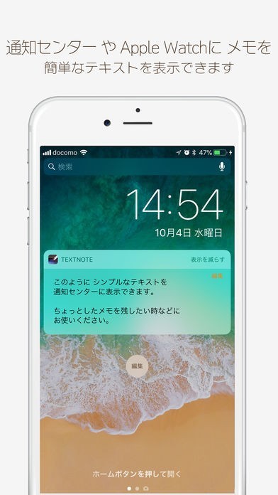 通知センター対応。ロック画面からいつでもテキスト入力や編集ができる!