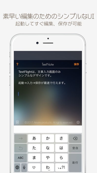 必要な時に素早く起動できるメモアプリ「TextNote」 シンプルで使いやすいメモ入力機能を備えており、ちょっとしたアイディアから買い物メモ、書きとめておきたい出来事までなんでも入力可能。 毎日の日記として活用したり、タスクリストにしてみたりと、発想次第で使い方の幅を広げることができるでしょう。 Apple Watchで利用できる他、通知センターに対応しているのもこのアプリならではの特徴。 アプリを起動することなく通知センターから直接テキストを呼び出せるので、急いでいる時にも活躍してくれます。