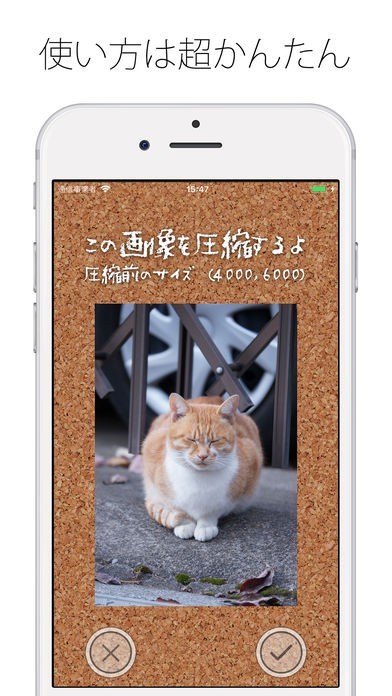 とてもシンプルで使いやすいアプリデザインなので、機械操作が苦手な人でも簡単に使いこなすことができます。サイズを小さく変換したい写真を選んで変換ボタンを押すだけで素早くサイズ変換してくれます。
