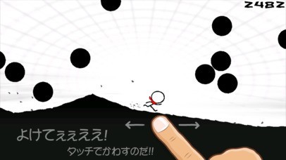赤いマフラーのヒーローに襲い掛かる岩を画面タップで華麗にかわしながら進んでいくアクションゲーム!
