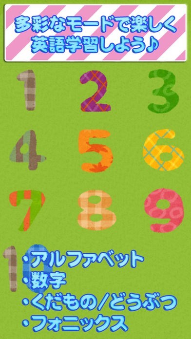 好きなキャラをタップする(さわる)とネイティブの英語で発音が聞ける英語知育学習アプリです。