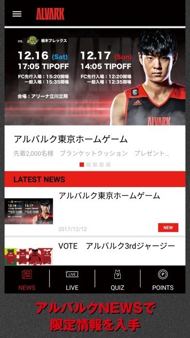 日本バスケットリーグのアルバルク東京公認アプリです。試合日程から選手のデーターまでチームの情報が満載されています。リアルタイムで試合情報を知ることもできるなど、応援がもっと楽しくなります。