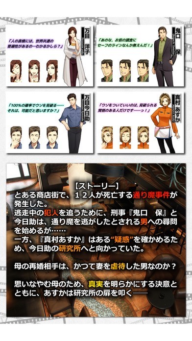 「嘘発見人【万目今日助】 ≪“新”心理分析アドベンチャー≫」関連アプリ