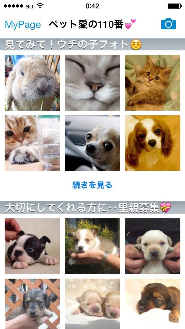 App Storeより引用ペットの写真や里親募集、迷いペットなど、ペットに関する情報や困ったことなどを共有し、助け合うためのアプリです。