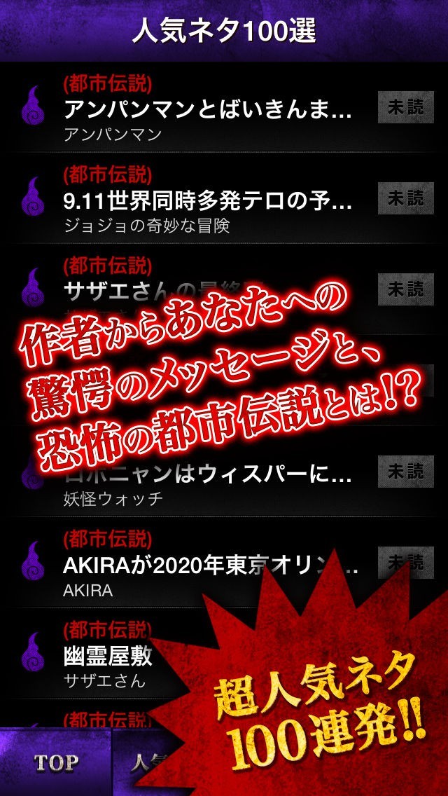 App Storeより引用アニメ・マンガ好きに捧げる「恐怖の都市伝説アプリ」が新登場!!
